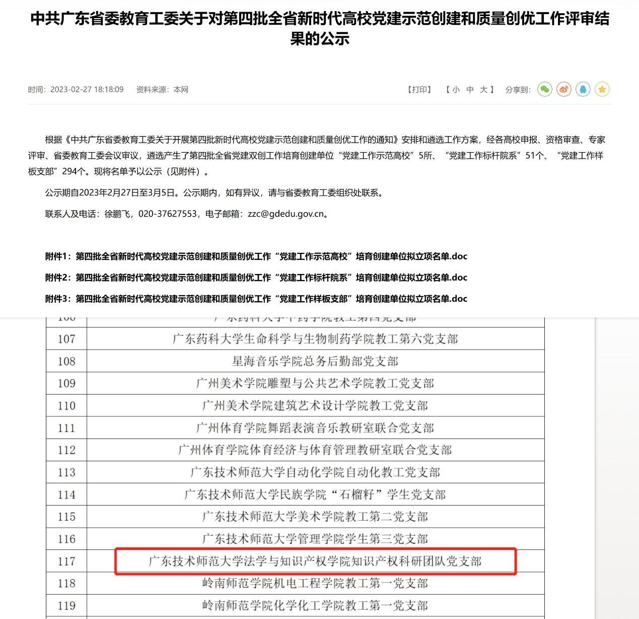 近日,省委教育工委公布了第四批全省新时代高校党建示范创建和质量创优工作遴选结果。taptap点点体育,taptap点点官网入口院知识产权科研团队党支部成功获批“全省党建工作样板支部”培育创建单位。