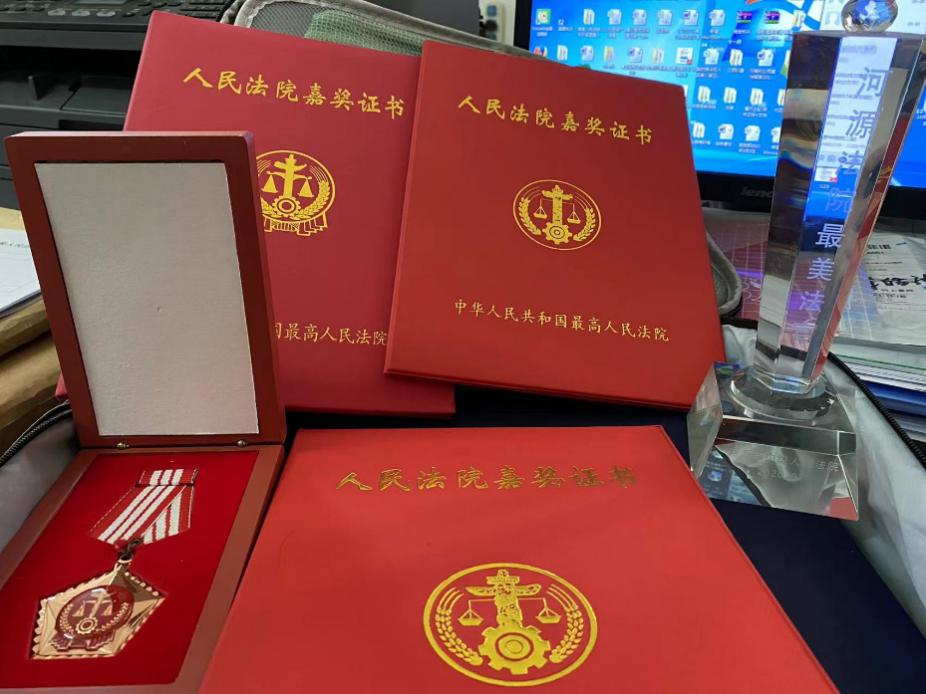 2011年-2014年在和平法院获得嘉奖、个人三等功等荣誉。获广东省河源市中级人民法院2014、2017、2019年度嘉奖、2018年优秀公务员、2020年个人三等功、2020年最美法官等荣誉。