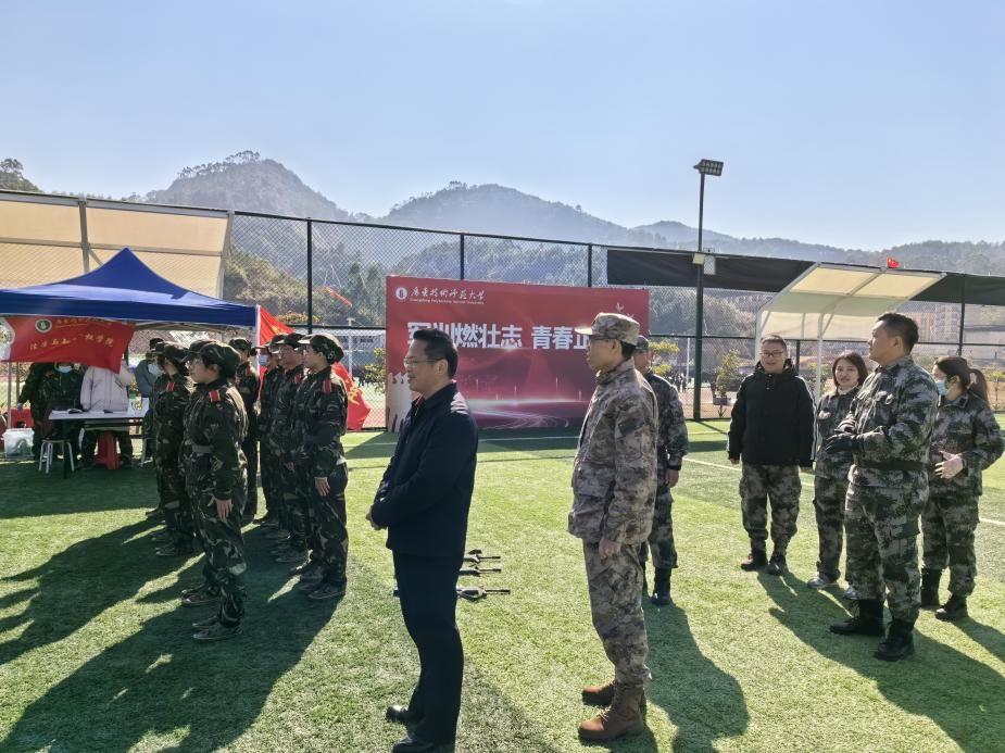 12月24日,学校党委副书记李向明在河源校区足球场亲切看望和慰问taptap点点体育2023级军训学生。