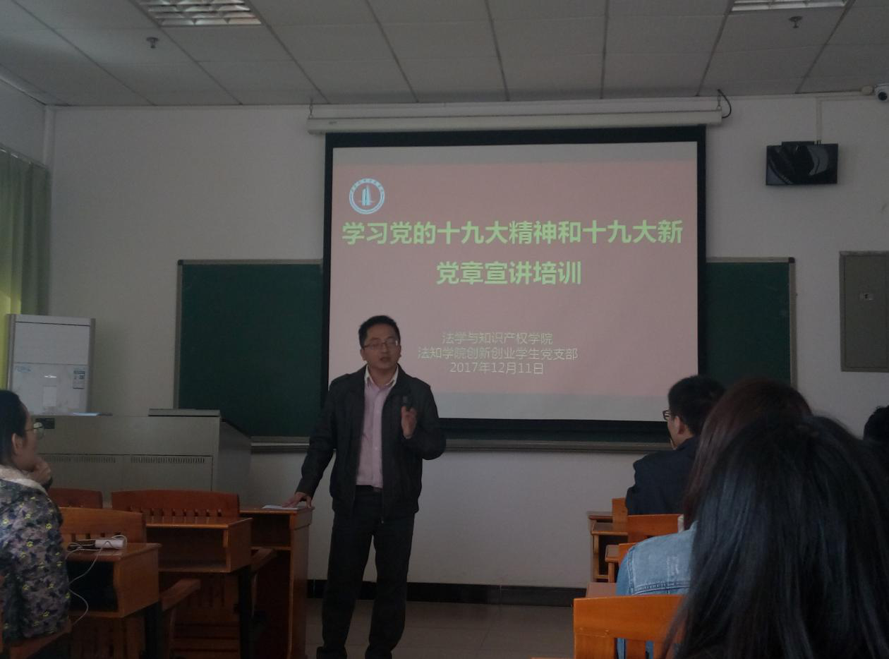 法知学院党总支将以此次宣讲为契机,启动法知学院师生范围内系统学习宣传贯彻党的十九大精神系列活动,并依托法知学院创新创业党支部的十九大精神宣讲队等深入学生宿舍中开展宣讲,引导广大同学学懂、弄通、做实,让十九大精神真正“进教材、进课堂、进学生头脑、进学生网络、进学生社区”。