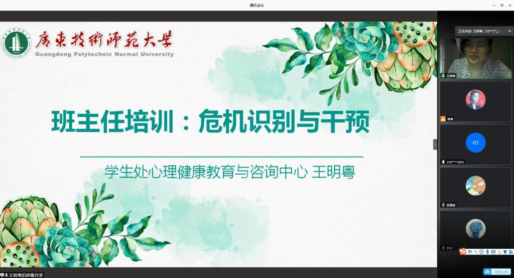 本次培训通过线上授课和交流的形式进行,培训明确了班主任在心理健康教育以及危机预防和干预工作中定位和职责,结合班主任的工作实际环境,详细阐述了班主任需要掌握六大风险识别点和需要重点关注的十大人群,并具体讲解了风险学生、危机学生以及发现精神障碍的学生的工作流程和注意事项。最后,结合具体案例,探讨班主任日常工作中和学生谈心谈话的艺术,介绍了焦点解决和叙事问话两种具有操作性和实效性的谈话模式。