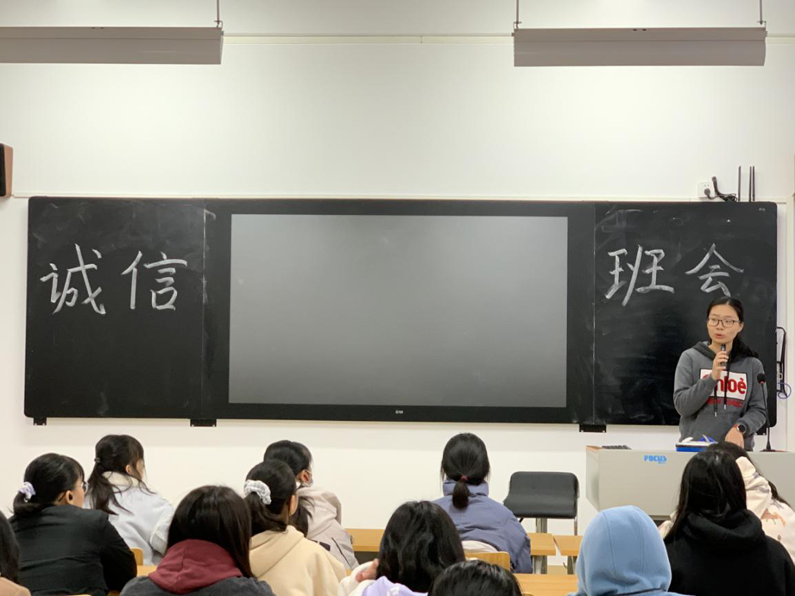 在各班班会上,班长提醒同学们临近期末考试要做好考前复习计划,提前熟知各科考核方法以及线上考试的考试流程,严格遵守考试纪律。随后,班长带领同学们读了《学生手册》中关于考试纪律的相关内容,并强调诚信应考是每一位学生应尽的义务。最后,全班同学郑重手签诚信考试承诺。