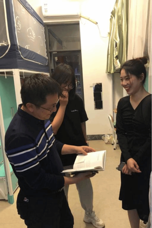 会后,李雪斌副书记与几位老师走访学生宿舍,与同学们进行交谈,了解同学们日常生活状态、询问他们是否住的习惯。他语重心长的对同学们说:要尽快适应大学校园环境,以学习为重,多阅读专业经典书籍,参与社会实践,提高自身综合能力。