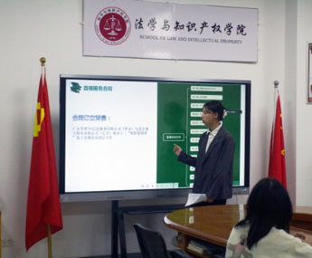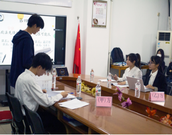 本次比赛各队伍通过抽签决定各自任务,每两支队伍作为甲方和乙方分别进行合同制作和合司审查。各队伍先进行 PPT 展示,之后双方派代表进行自由谈判。评委老师结合合同内容、合同审查结果、PPT 展示环节、谈判环节进行评分。