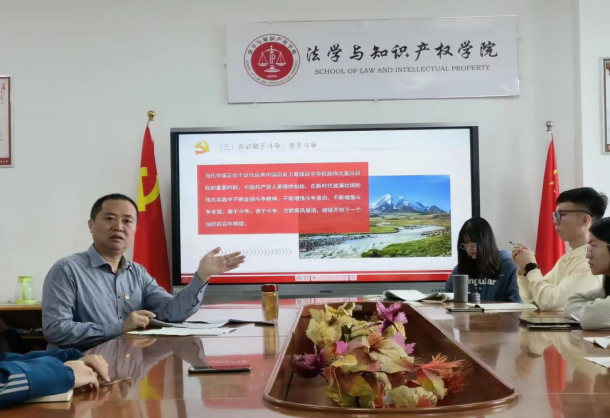 院长黄俊辉带领同学们共同进行二十大精神的学习,深刻领悟“两个确立”的决定性意义,增强“四个意识”、坚定“四个自信”、做到“两个维护”,并呼吁同学们作为新时代的新力量要与祖国同心同向,与时代同频共振;要坚持知行合一,努力学好专业知识;要始终牢记初心使命、敢于善于斗争;要尽力拓宽眼界,自主设计人生。