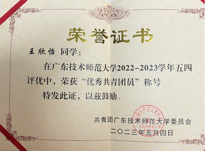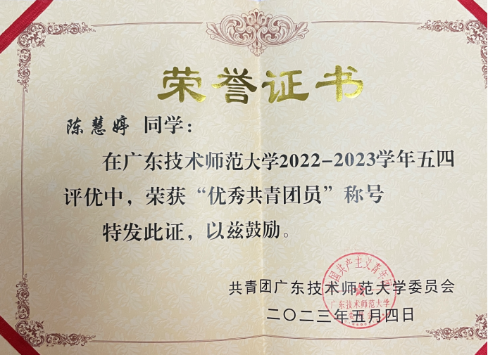 优秀共青团员——陈慧婷、黄讯、陈依依、王欣怡