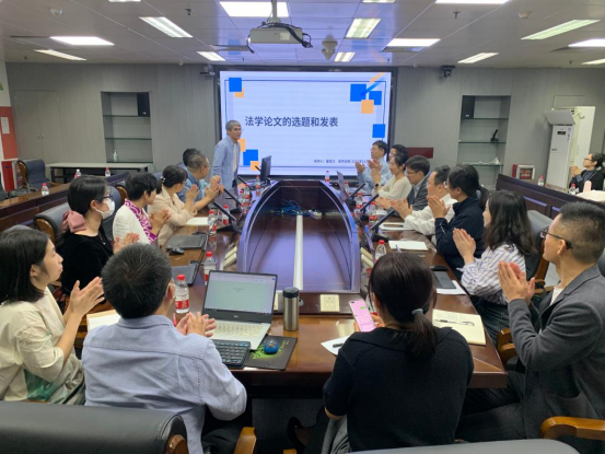 董惠江结合主题分享了他作为《北方法学》主编和个人学术研究的经验与体会,从选择研究领域、确定研究范围、发现问题、提炼命题、学术创新、切合个人情况、题目设计等方面进行了详细讲解。结合论文发表方面的问题,董惠江还从创新与论文发表的关系、了解刊物的偏好、研究期刊风格、对应期刊层级、认真对待目标刊物的形式要求等方面与学院教师们进行了分享。