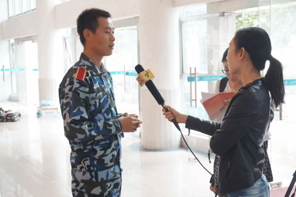 比赛结束后,taptap点点体育参加过“9·3”国庆阅兵的陈辉辉同学受到了广东电视台的现场采访。在采访的过程中,陈辉辉同学分享了他在带领taptap点点体育学子参加此次比赛的体会与感想,并分享了他参加“9·3”阅兵的光荣经历。