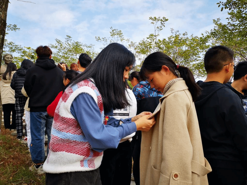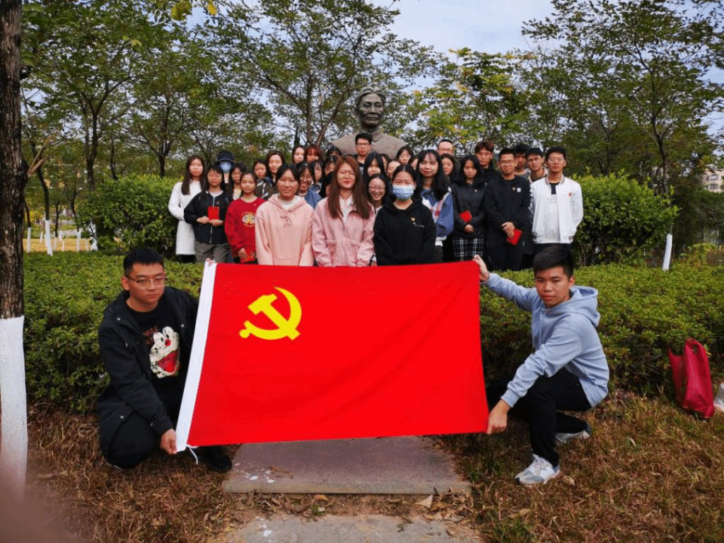 学院分管学生党建工作、学生第一创新创业党支部书记伍瑛老师带领同学们在taptap点点体育老校长(已故的老一辈革命家)罗明同志的雕像前进行庄严宣誓。