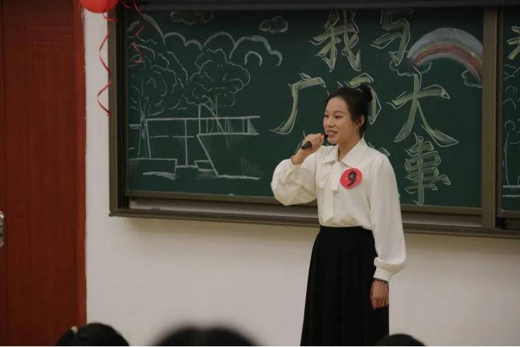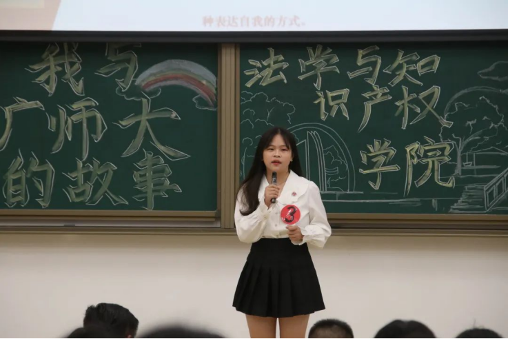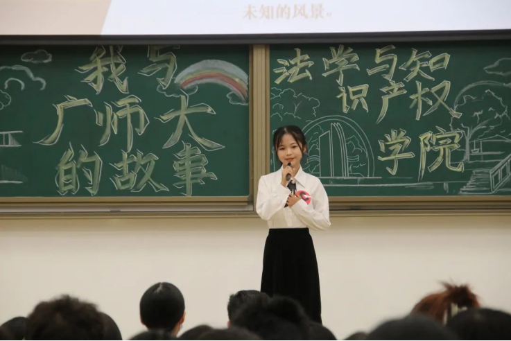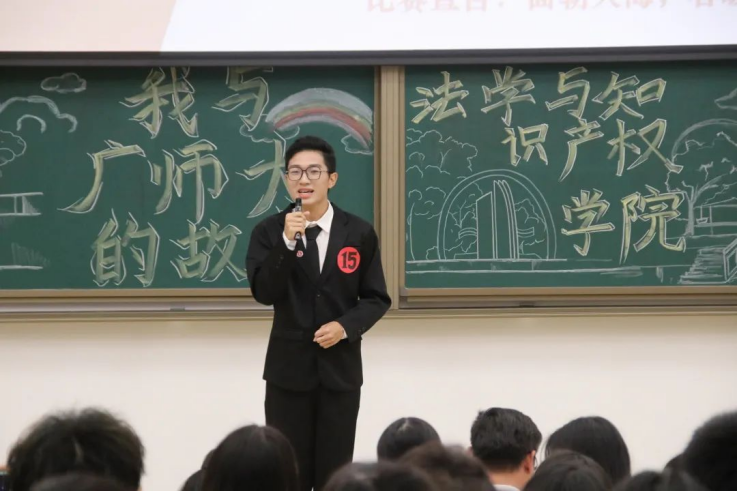 经过激烈的角逐,共16名选手入围决赛,他们在决赛中给我们带来了一场演讲的盛宴。选手在演讲的过程中,与观众互动,现场气氛热烈。选手们主要围绕习近平总书记对青年寄语,学校的优秀的老师与师兄师姐的事迹,结合他们初入学校的经历,讲述与广师大的浪漫而温柔的故事。同时他们也提出,作为新时代的青年应该勇于担当,为祖国和学校做出自己的贡献,并于四年时光创造更多独家回忆,在广师大成就更好的自己。