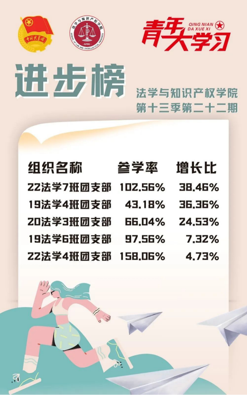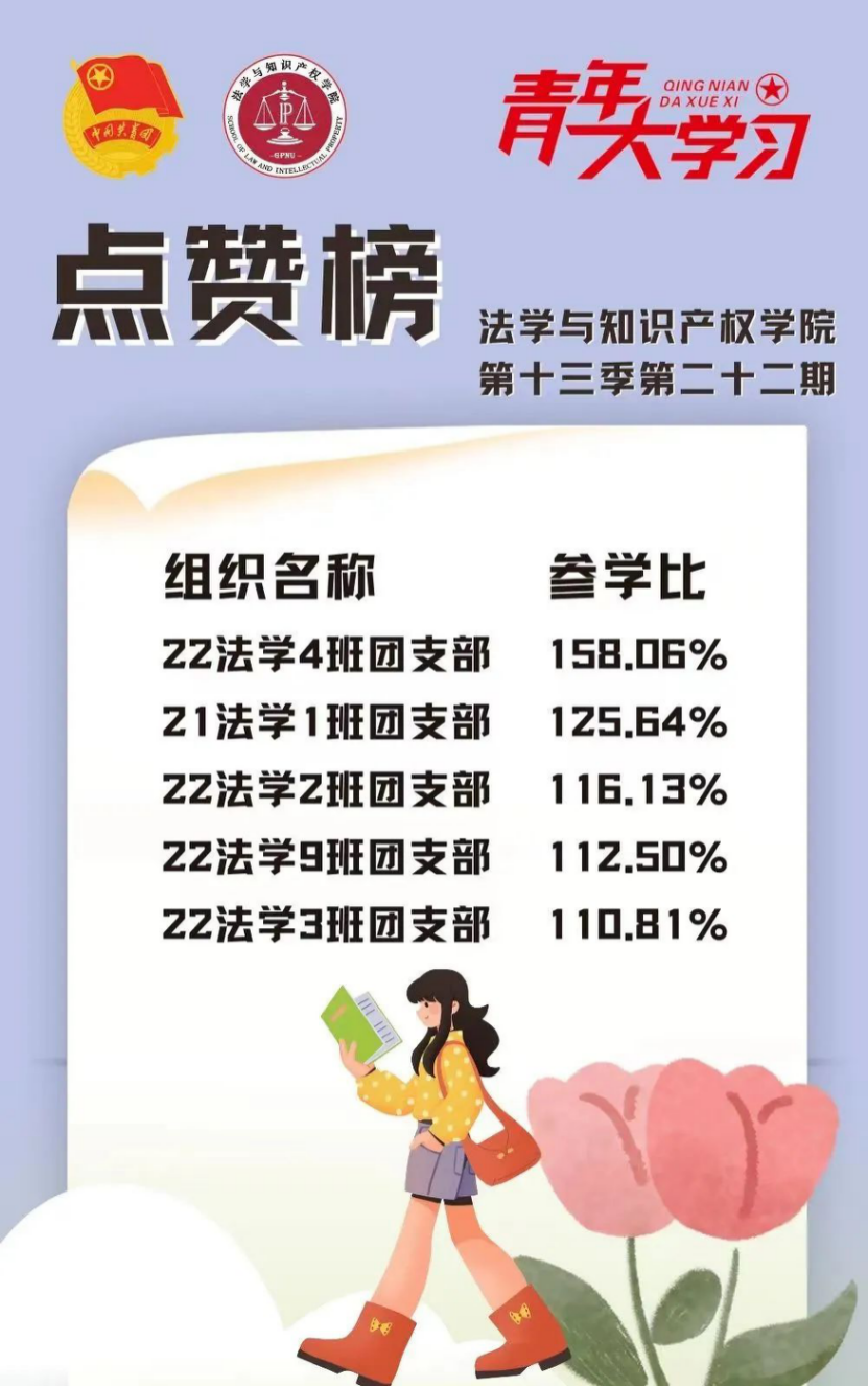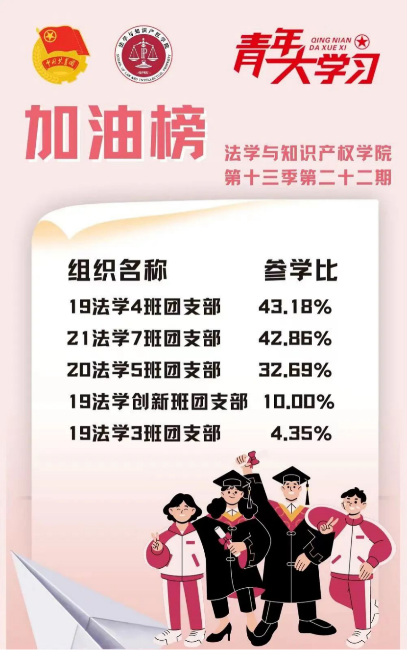 从各基层组织的课程学习情况来看,taptap点点体育22级法学4班、2班、9班、3班团支部和21级法学1班团支部的参学比均达到110%及以上,希望下期继续保持较高的发动效率,延续此前好成绩!此外,22级法学7班、4班团支部、20级法学3班团支部和19级法学4班、6班团支部的参学增长比均达到了4%以上,参学的情绪高涨!最后希望参学比不足50%的班级团支部在下一期有新的提高和突破。