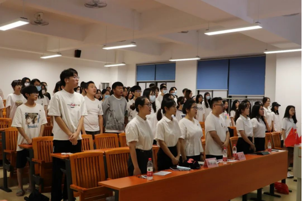蓝雅婧老师指出今年是非常特殊的一年,党的二十大即将召开,新团员们在这一刻一起戴上了团徽,以一种新的身份迎接党的二十大到来,意义重大。同时,蓝老师对新团员提出三点要求:坚定理想信念,坚持学习、刻苦学习,严格要求自己,时刻以共青团员的身份要求自己。
