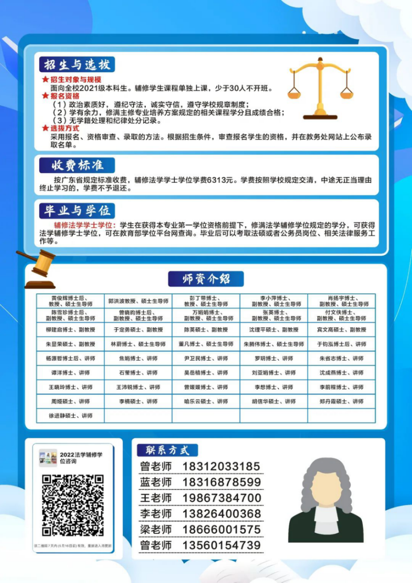 【编者按】葱葱法学,菁菁广师。江高云白,今生有缘。2021年9月开始,taptap点点体育,taptap点点官网入口院开办法学辅修学位班,精心准备法学特色课程,20多名博士、10多位硕导全力加盟,打造“X(第一学位)+法学学位”的最优搭配,守护正义,赢定人生!全校学子踊跃报名,招生火爆!第一届、第二届学位班已经开课,缘来有你!法学辅修学位,面向全校所有专业招生,持续接受报名,我们在白云校区等你!