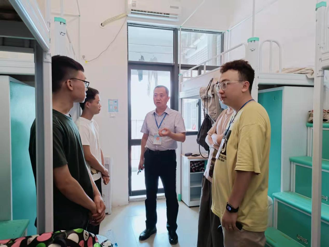 下午,许建鑫书记、黄俊辉院长率队带领班主任、辅导员走访学生宿舍,了解同学们入住情况,耐心的解答了同学们住宿生活方面的疑问。同学们也与老师们分享了初次步入大学的感受和体会。老师们勉励同学们要珍惜大学四年时光,尽早适应大学学习生活,尽快完成高中生到大学生的角色转变。在走访宿舍中,学院领导为家庭经济困难学生送上了“爱心礼包”,激励同学们早日学有所成。