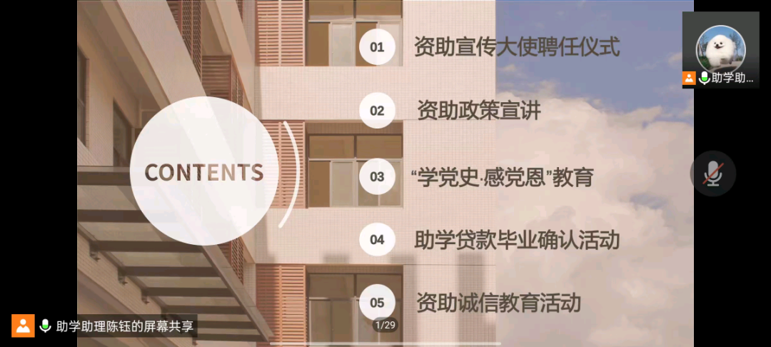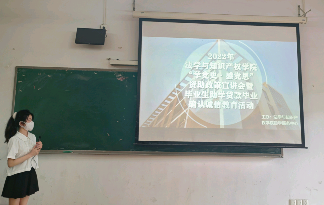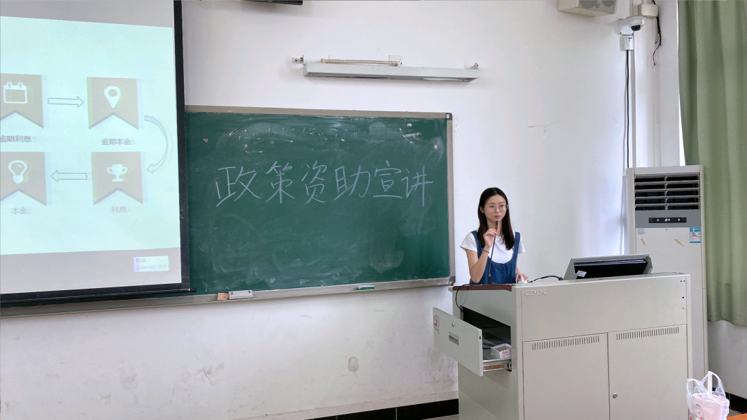 在下一环节,助学助理黄婧介绍了生源地贷款政策,她先以一个易懂的短视频带同学们简单了解了助学贷款政策,然后对毕业确认、贷款还款流程、最新通知和注意事项一一进行了讲解,以期同学们得到援助的同时,提高金融风险防范意识,树立诚实守信的价值观和科学理性的消费观。