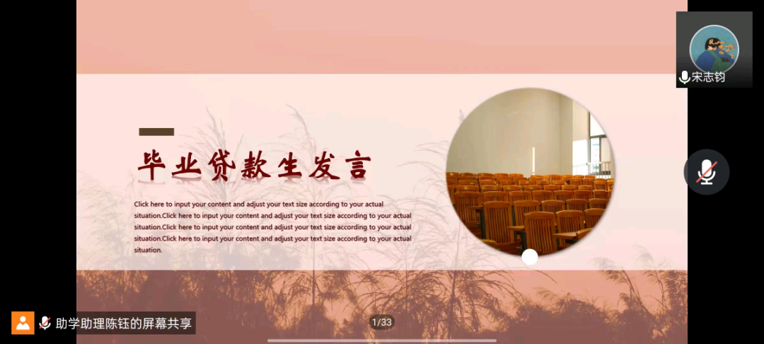 之后,宋志钧同学作为毕业生贷款发言人为我们分享他个人的见解,讲述了助学政策对他的影响和帮助,使同学们加深了对助学贷款相关措施的了解,并提出“喝水不忘挖井人”将感恩铭记于心。