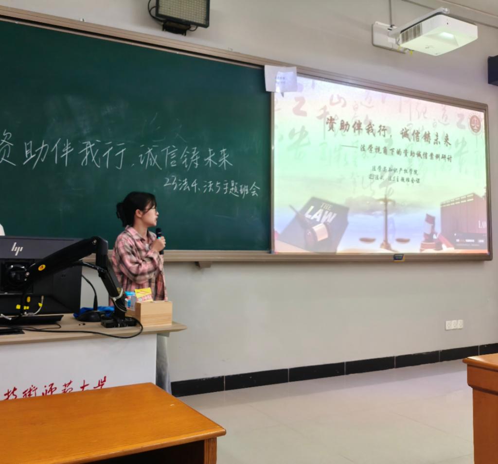 助学助理刘海玲结合《民法典》第7条、《中华人民共和国教育法》和《学生资助资金管理办法》等,强调“虚构贫困信息”“违规使用助学金”等行为的法律性质和法律后果。陈春娟带领同学们深入探索法律视角下的诚信解读,通过对国家奖学金、国家励志奖学金、助学贷款提供或伪造虚假材料的三个不同的真实案例的剖析,跟同学们强调诚信不仅是道德义务,更是法律要求。
