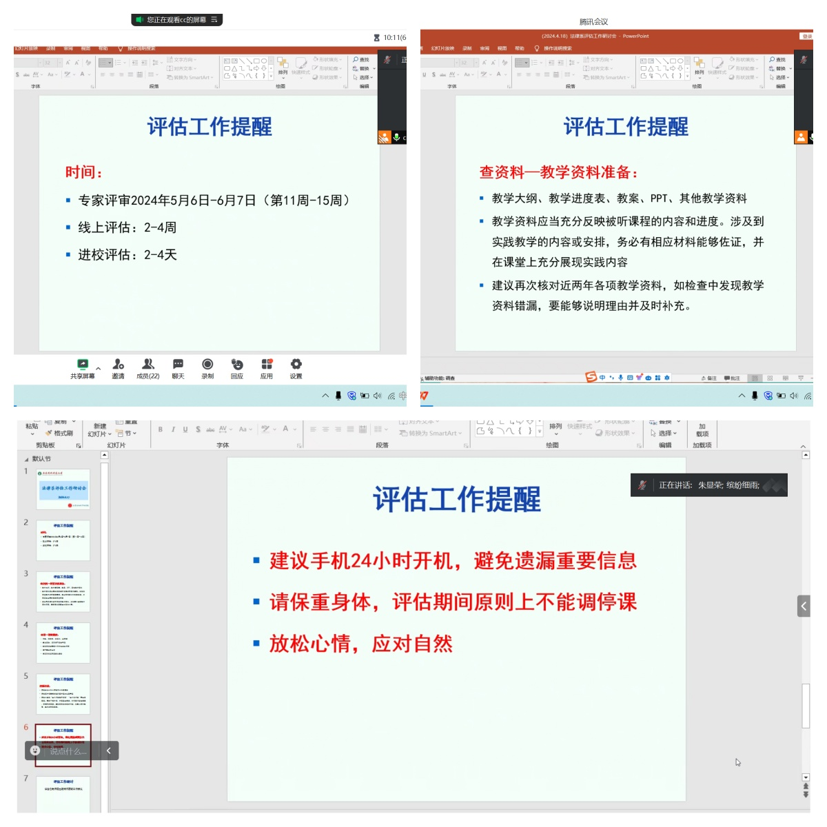 接着,系主任从评估时间安排、教学资料准备、听课评课、教师访谈等几个方面做出了相应的工作提醒,对于教学档案的制作和整理、课堂规范的关键问题等提出了具体的建议。